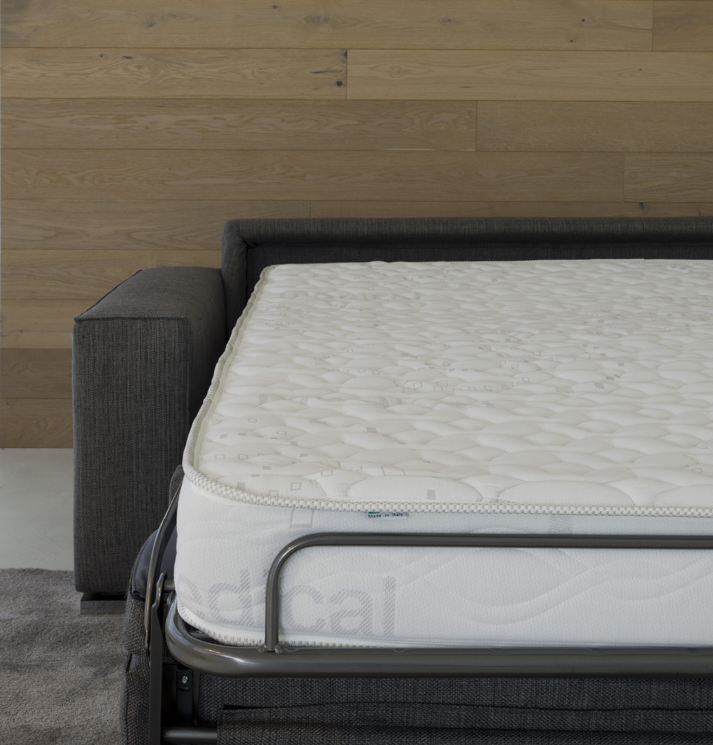 E’ un divano letto con un materasso alto ergonomico, con un meccanismo per un utilizzo anche continuativo.