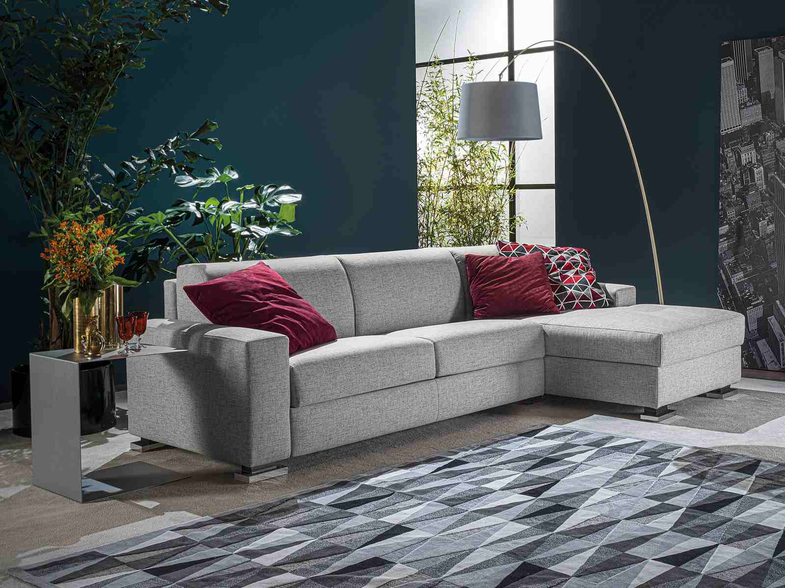 Imbottiture in poliuretano espanso ad alta densità e finiture realizzate con cura e precisione; il divano letto contiene un materasso alto ergonomico che lo rende un vero letto.