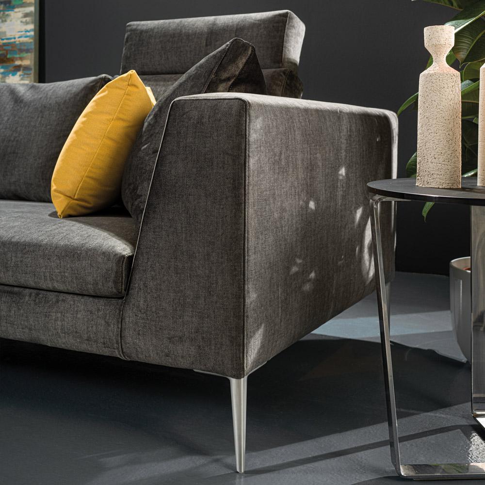 Divani ed elementi componibili dalla forma semplice ma non convenzionale, realizzato con imbottiture in poliuretano ad alta densità nelle sedute e in misto piuma nello schienale.